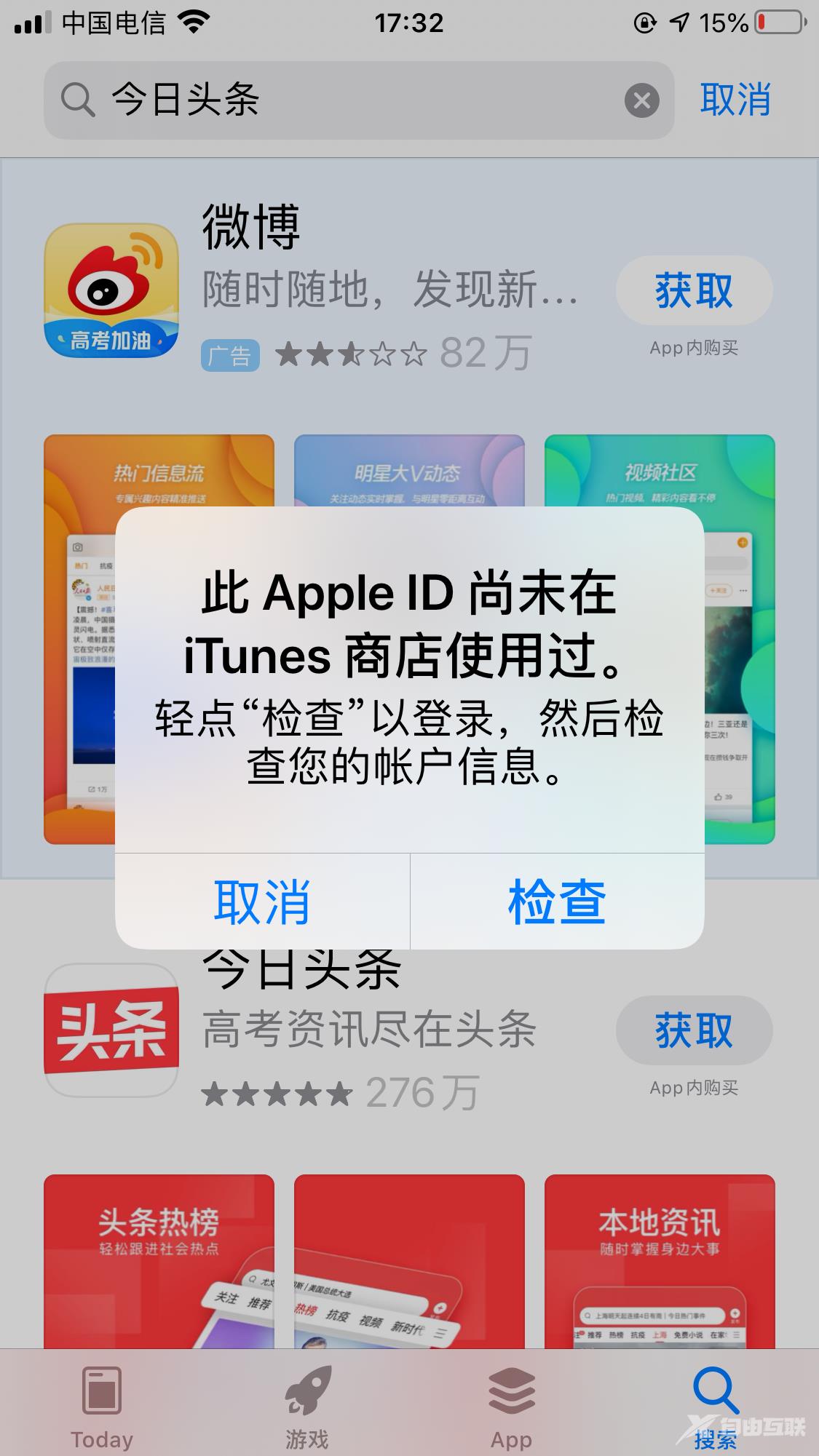到这一步就差不多注册完成了,接下去就可以进入手机App Store,点击搜索,下载今日头条。