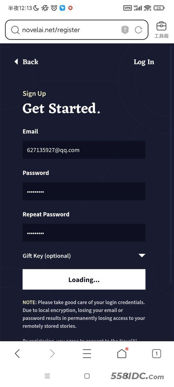 5、值得注意的是,如果在注册过程中页面出现loading……的提示,需要将其切换至日服线路才可以完成注册操作。