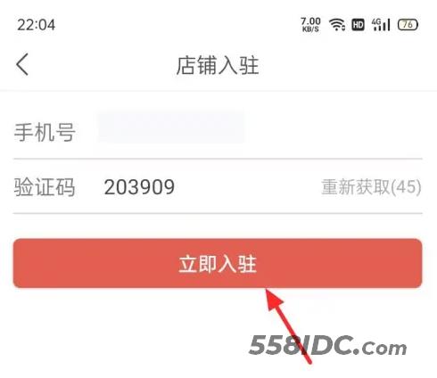 2、输入手机号码进行验证,点击“立即入驻”