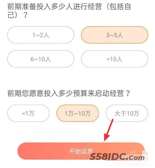 3、根据实际情况进行选择,然后点击“开始运营”