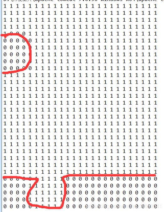 1.计算需要的小图轮廓,用二维数组来表示,二维数组有两张值,0和1,其中0表示没有颜色,1有颜色,如下图,我要抠图的轮廓是这样的: