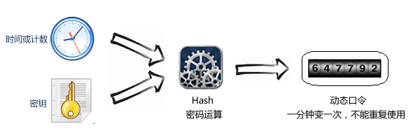 动态口令(OTP,One-Time Password)又称一次性密码,是使用密码技术实现的在客户端和服务器之间通过共享秘密的一种认证技术,是一种强认证技术,是增强目前静态口令认证的一种非常方便技术手段,是一种重要的双因素认证技术,动态口令认证技术包括客户端用于生成口令产生器的,动态令牌,是一个硬件设备,和用于管理令牌及口令认证的后台动态口令认证系统组成。