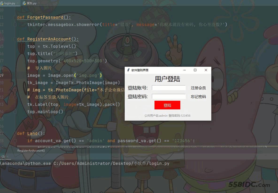 到此这篇关于Python+tkinter制作经典登录界面和点击事件的文章就介绍到这了,更多相关Python tkinter登录界面内容请搜索自由互联以前的文章或继续浏览下面的相关文章希望大家以后多多支持自由互联!