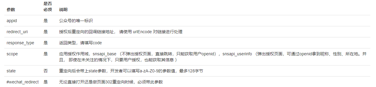 https://open.weixin.qq.com/connect/oauth2/authorize?appid=APPID&redirect_uri=REDIRECT_URI&response_type=code&scope=SCOPE&state=STATE#wechat_redirect