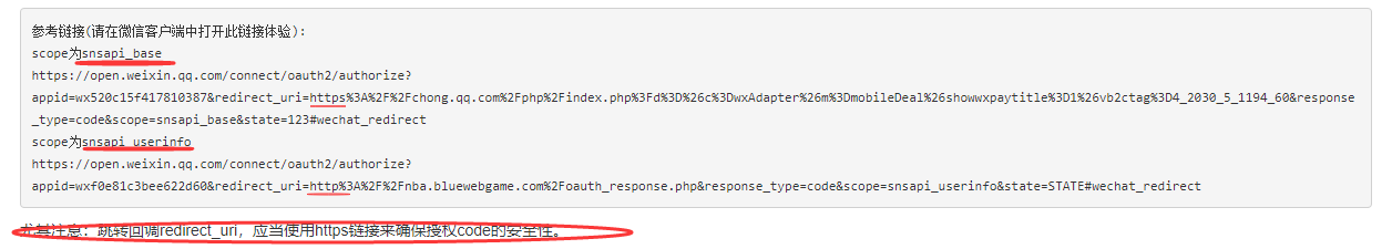 请注意微信授权登录scope两种redirect_url后面跟的链接使用的协议。