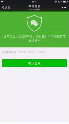 参数替换完毕如果以snsapi_userinfo为scope发起的网页授权,是在PC端点击菜单会跳出提示用户同意授权登录,如果用户未关注公众号时同样也会提示,示例页面: