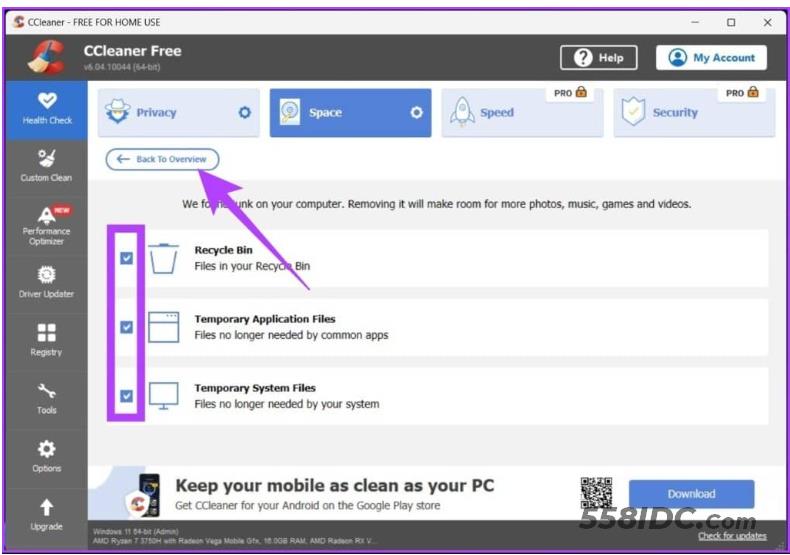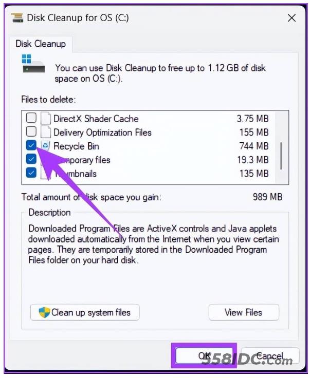 3、单击清理系统文件,选择必要的文件夹,然后确定。