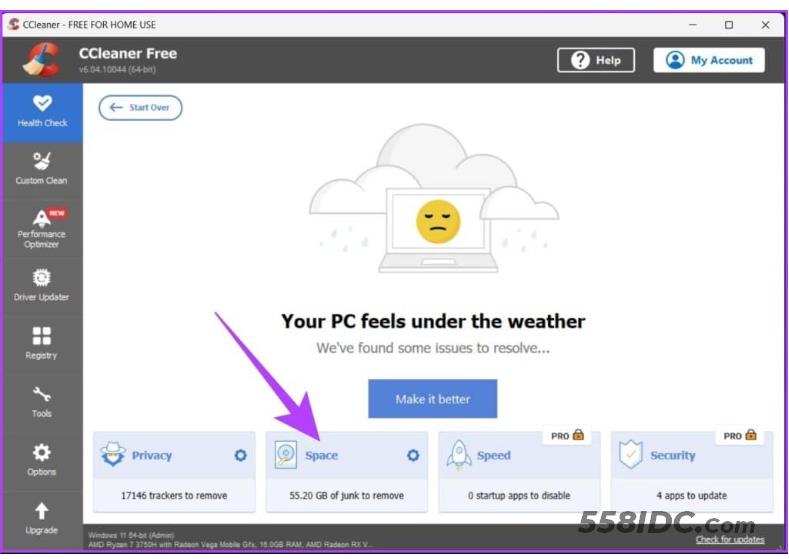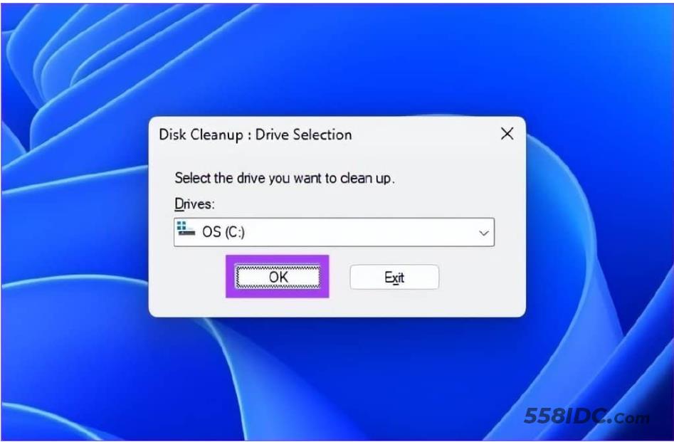 2、在提示要选择清理的驱动中选择安装windows操作系统C盘驱动器,单击确定。