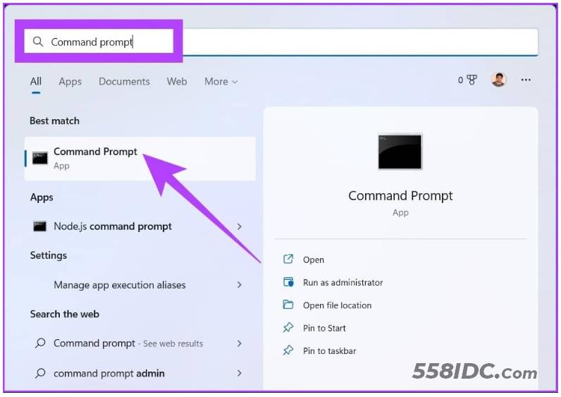 1、按windows键,键入命令提示符,然后单击以管理员身份运行。