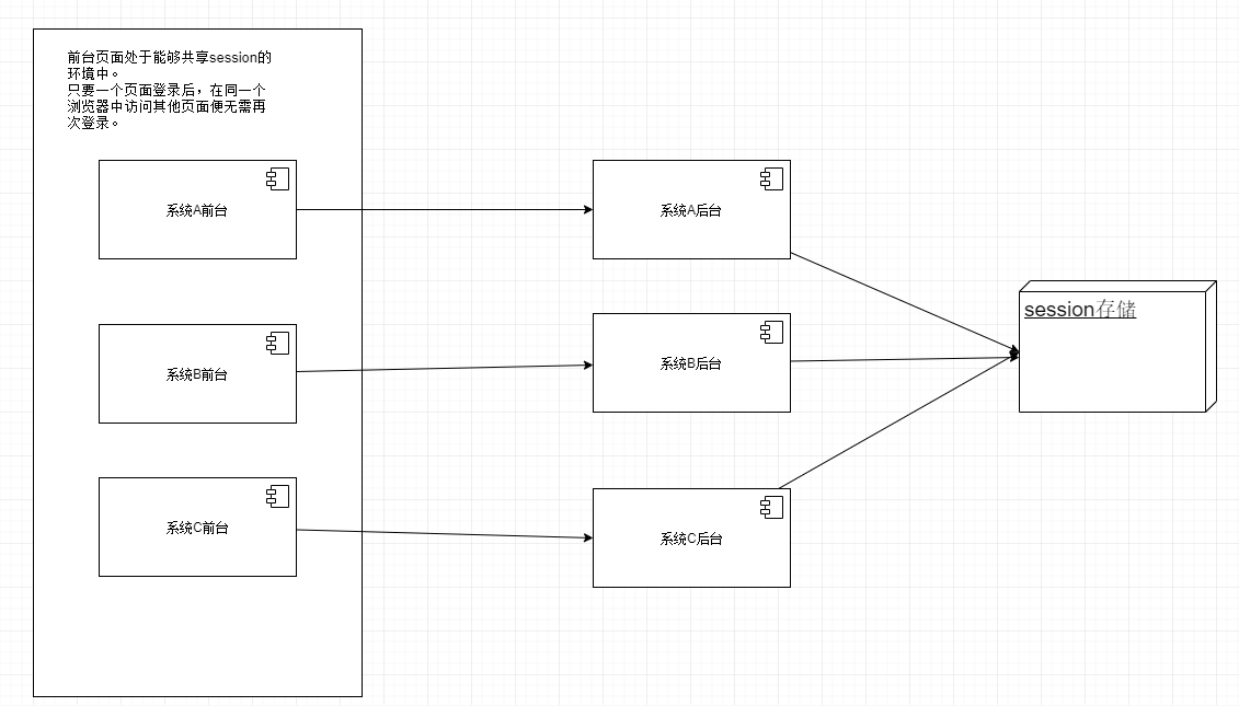基于 cookie-session 机制的系统中,登录系统后会返回一个 sessionId 存储在 cookie 中,如果我们能够让另外一个系统也能获取到这个 cookie,不就获取到凭证信息了,无需再次登录。刚好浏览器的 cookie 可以实现这样的效果(详见web 跨域及 cookie 学习)。