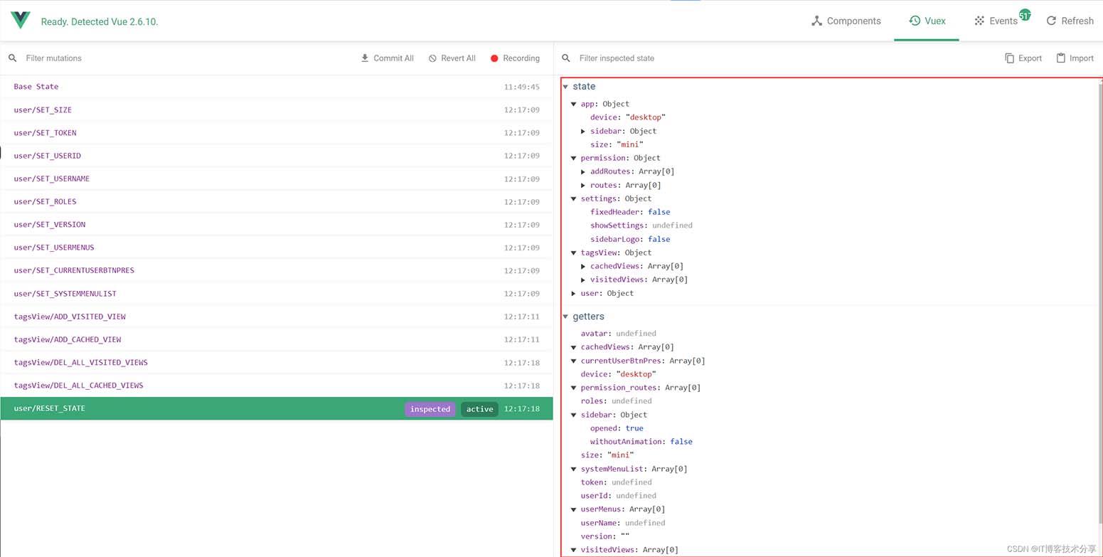- 方法三 : vuex清除token (不会出现白屏,推荐使用)