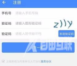 2、填写手机号码,在第二行的“验证码”栏输入图形验证码。点击“发送验证码”,收到验证短信后,在第三行的“验证码”栏输入6位短信验证码。全部输入完成后,点击“下一步”进入注册信息填写页面。