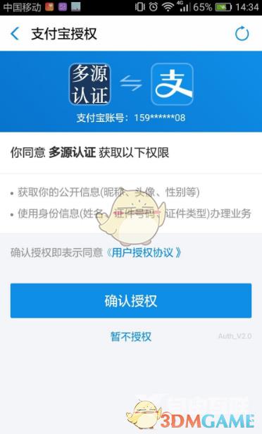 3、接下来以支付宝授权认证为例,授权成功后即可登录。
