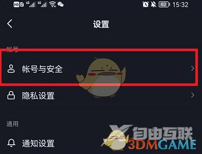 3、然后在此界面点击【账号与安全】进入到界面中;