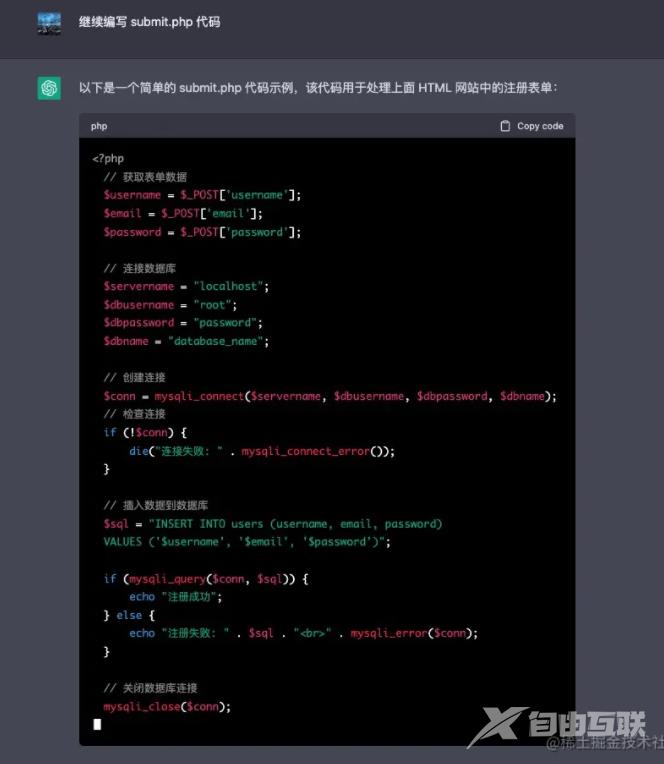以上就是PHP利用ChatGPT实现轻松创建用户注册页面的详细内容,更多关于PHP ChatGPT创建用户注册页面的资料请关注自由互联其它相关文章!