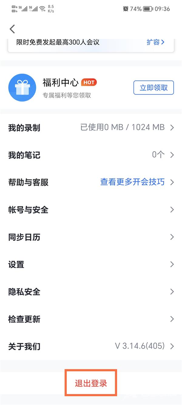 腾讯会议退出登录在哪里