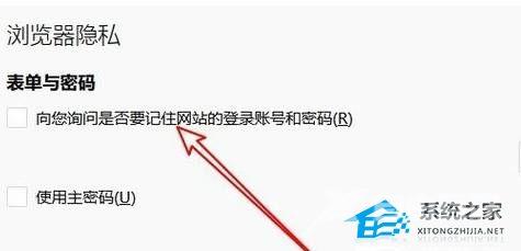 4、之后在右侧的页面中找到表单与密码选项,然后将下方的向您询问是否要记住网站的登录账号和密码勾选起来就可以了。