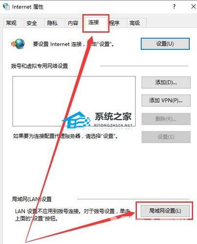 6、然后切换到【连接】中,点击下方的【局域网设置】。
