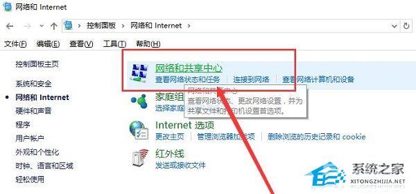 3、进入控制面板中,选中【网络和Internet】。点击进入。