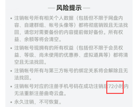 答:曲奇云盘注销后要72小时后才能重新注册,