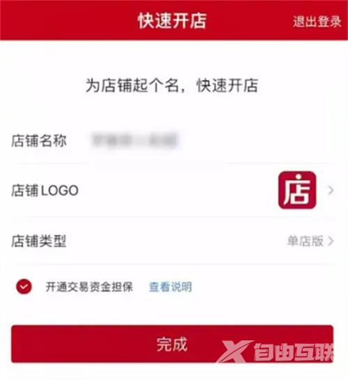 2页面跳转以后,输入店铺名称,设置店铺logo,选择店铺类型并点击完成。