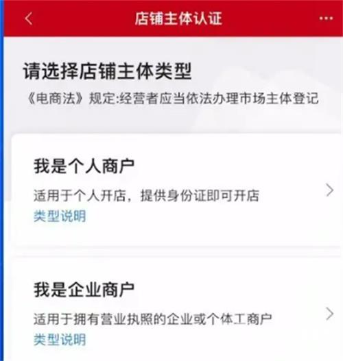 5接着选择自己店铺的主体类型,以我是个人商户为例。