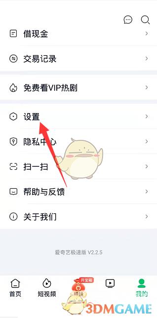 1、打开爱奇艺极速版我的页面,点开下方的设置。