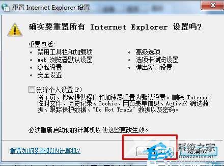 5、点击之后会弹出一个警告窗口,像我们确认是否重置,我们直接点击重置按钮。