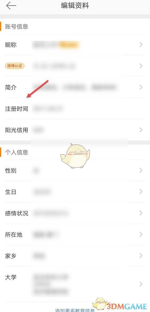4、最后在编辑资料界面就可以查看注册时间。