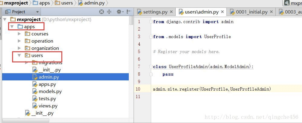 如果没有注册,那么你在登录django自带的admin的后台,就看不到我们创建的表结构