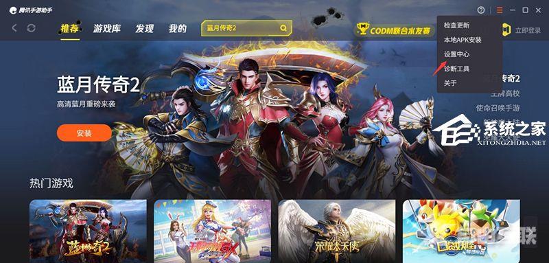 打开腾讯手游助手点击设置,进入设置中心。