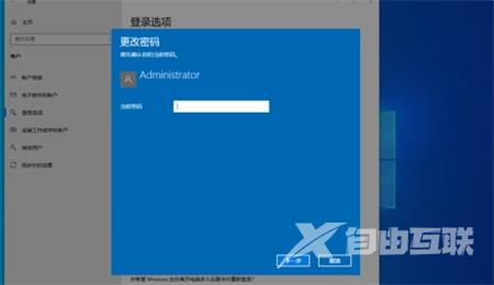 4、在出现更改密码窗口,输入我们当前的开机登录密码,点击【下一步】