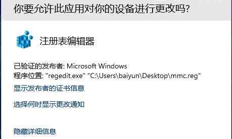5、然后双击打开刚才以【.reg】结尾名称命名的文件,用户账户控制窗口,你要允许此应用对你的设备进行更改吗?点击【是】;