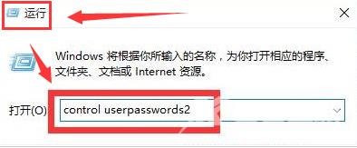 2、找到运行窗口后输入control userpasswords2代码并按下回车键