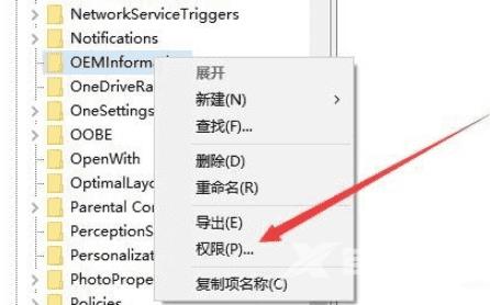 1.首先,右键单击无法删除的注册表项,然后在弹出菜单中选择权限菜单项。