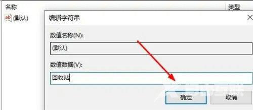 4、之后右击右侧的默认将键值改为回收站并退出即可