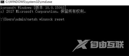 4、再到弹出的输入框中输入netsh winsock reset 回车,完成以上操作后重启电脑。这样就可以了