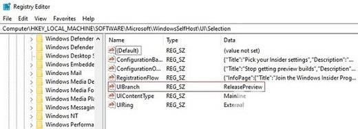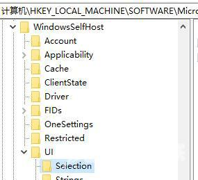2、定位到这个位置HKEY_LOCAL_MACHINE\SOFTWARE\Microsoft\WindowsSelfHost\UI\Selection。