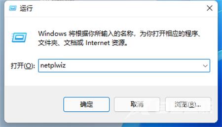 2、在运行输入框中输入netplwiz命令,点击确定。