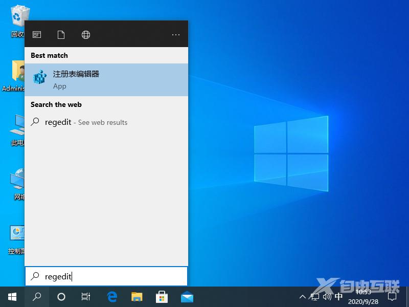 2、当然我们也可以在左下角搜索框输入regedit或者注册表进行搜索也可以。