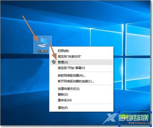 1、在桌面此电脑右键菜单中,点击管理,进入计算机管理。