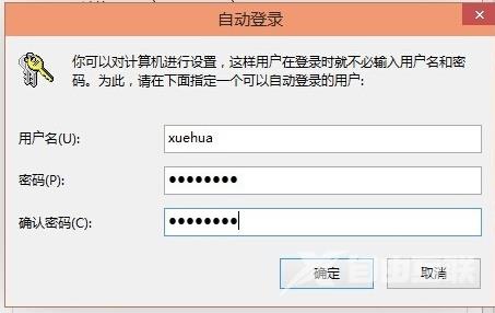 3、输入用户名和密码,点击确定即可,等下次进入系统的时候就不用输入密码啦