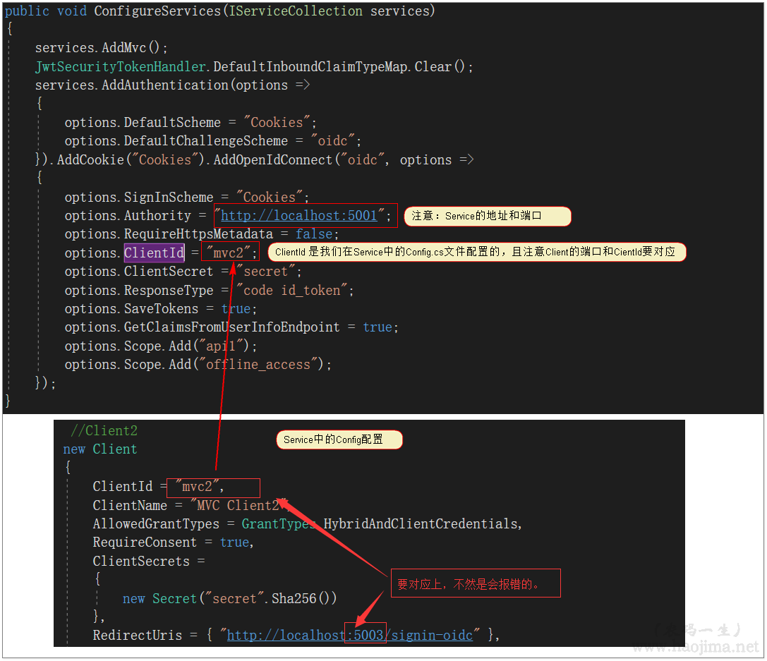 然后在Client的Startup.cs类里修改ConfigureServices方法: