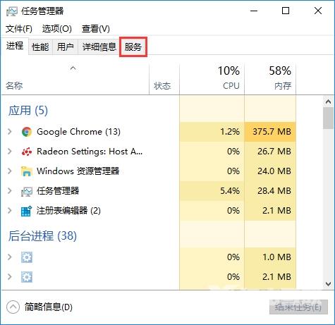 1、按住CtrlAlt和delete三个键,打开任务管理器;点击右上角进入的服务菜单;