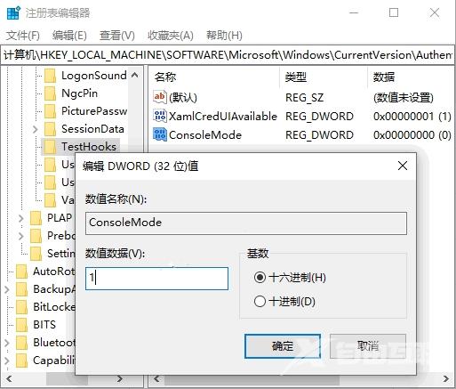 在右侧窗格中新建一个名为ConsoleMode的DWORD(32位)值,数值数据设置为 1 。