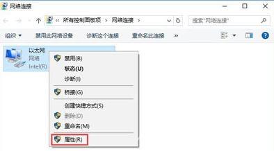 2、右键点击以太网(或双击后点击属性),所示无线的用户在wlan上单击右键,在弹出的菜单中点击【属性】;