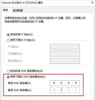 4、选择使用下面的DNS服务器地址,输入8.8.8.8备用DNS 4.2.2.1然后点击 确定 -- 确定;