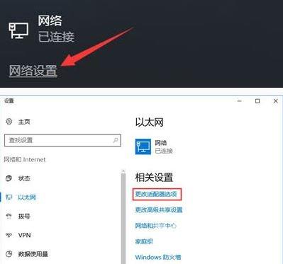1、点击任务栏网络图标——网络设置(网络和internet设置)——更改适配器选项;