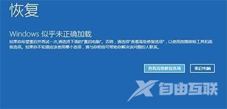 1、当进入不了win10系统时,长按电源键强制关机,然后再开机重复两次即可弹出修复页面,选择高级修复选项;
