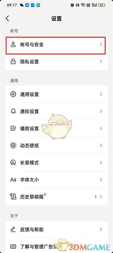 3、来到设置的页面点击【账号与安全】;
